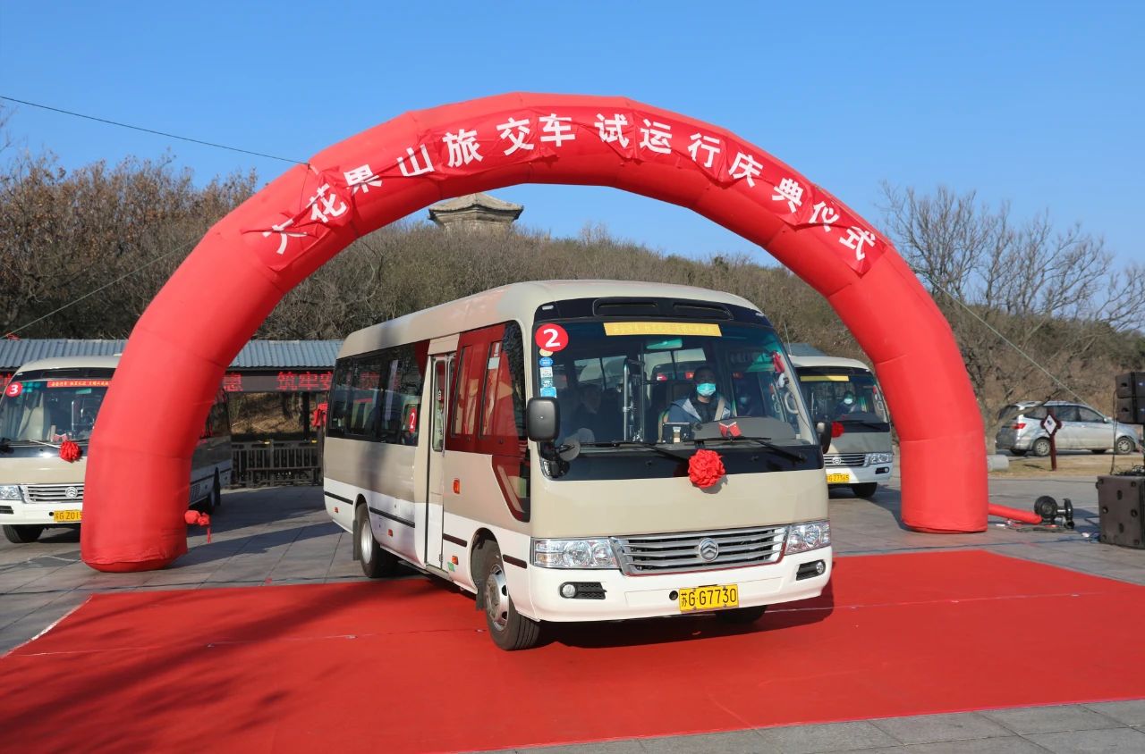 上午9點30分,身披紅花綢帶的六輛旅交車依次排開,車輛從玉女峰出發(fā),途徑萬年山花海??空竞蜄|磊延福觀??空?,終點站到達漁灣景區(qū),路線全長12公里,比原車行線路縮短了16公里,從玉女峰到達漁灣景區(qū)的時間只要20分鐘,大大縮短了游客乘車時間。