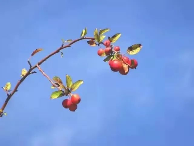 春賞花來(lái)冬看果,在連徐高速、環(huán)云臺(tái)山大道道路兩側(cè),如葡萄般大小的海棠果,或三四顆一簇,或五六粒一團(tuán),在初冬清晨的陽(yáng)光照耀下,一串串、一簇簇紅艷艷的海棠果綴滿(mǎn)枝頭,像密密麻麻的櫻桃,又像是小燈籠,分外妖嬈。一些原本干癟的果子,被鳥(niǎo)兒啄開(kāi)后,讓已泛紅的果子更加艷麗,如同一朵朵梅花綻放在枝頭,讓人拍手稱(chēng)奇。